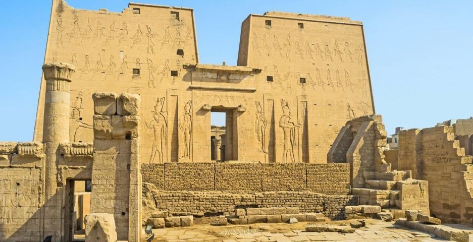 Строителството на Храма край Едфу е започнато през 237 г. пр.н.е., а е завършен двадесет години по-късно при династията на птолемеите в чест на Хор. Според преданията, този каменен монумент е построен на мястото, където се е състояла митичната битка между Хор И Сет. Истината обаче е, че това е последния от поредицата издигнати храмове тук като е завършен при Птолемей 12-и.