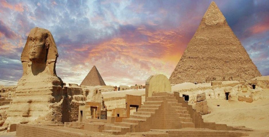 Посещение на известните пирамиди в Гиза. Пирамидите в Гиза от дълго време са най-посещаваната атракция около Кайро. От времето на тяхното изграждане пирамидите в Гиза въплъщават древността, мистерията и дават повод за невероятни хипотези. Пирамидите са единственото чудо на древния свят, което е оцеляло почти непокътнато. Погребалната голяма пирамида на Хеопс е най-старата в Гиза и най-голямата в света, изградена ок. 2500 г. пр.н.е. от близо 2,3 милиона варовикови блокове, тежащи средно по 2,75 тона и придвижвани от 100 000 роби. Трите по-малки пирамиди в съседство принадлежат на Хеопсовите царици или сестри. Сфинксът е разположен наблизо, странна фигура с тяло на лъв, лице на човек и царска брада.