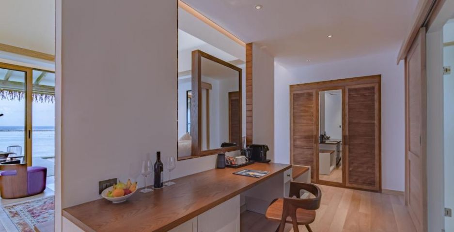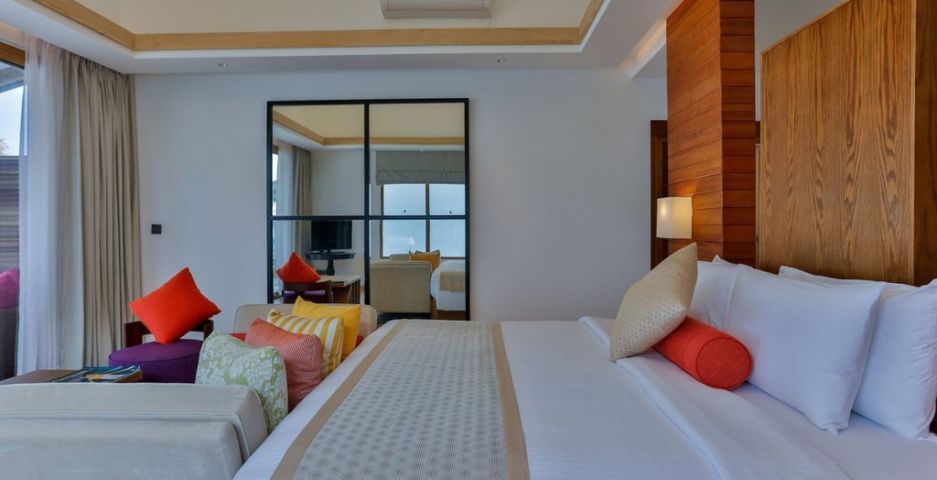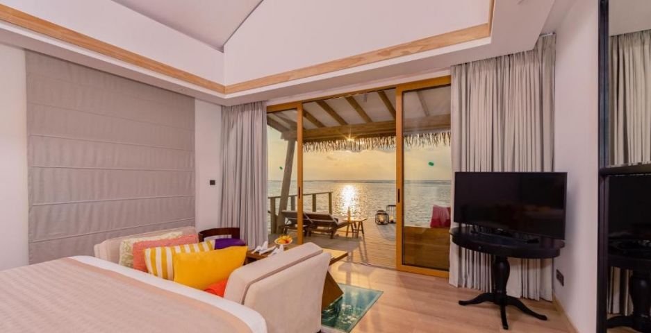 На територията: Комплексът разполага със СПА център от световна класа и бар, разположен на колове във водата. Насладете се на панорамния изглед към острова, докато хапвате ястия на шведска маса в ресторант Malaafaiy. Предлагащ богата селекция от вина, Nalha Falhul ще ви плени с уединена атмосфера и напитки след хранене.
