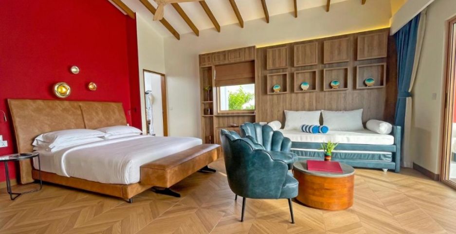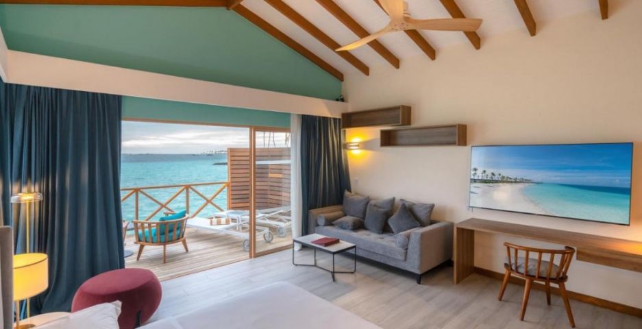 В стаите: Joy Island разполага с 91 вили за настаняване на плажа и 60 разположени над водата. 151 просторни апартамента и вили с избор на гледка към изгрева или залеза и типичните за Малдивите бани на открито.