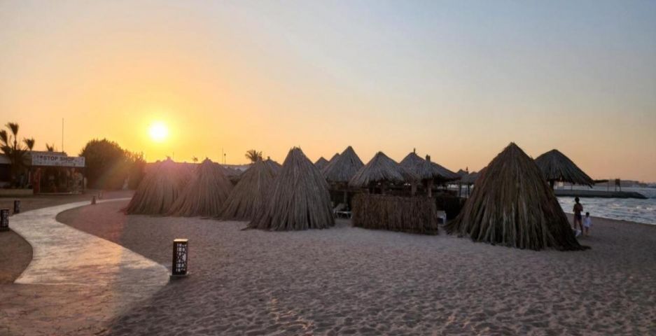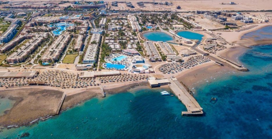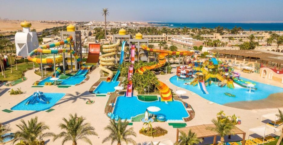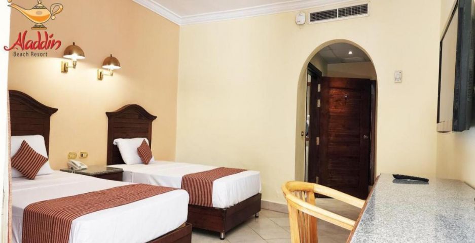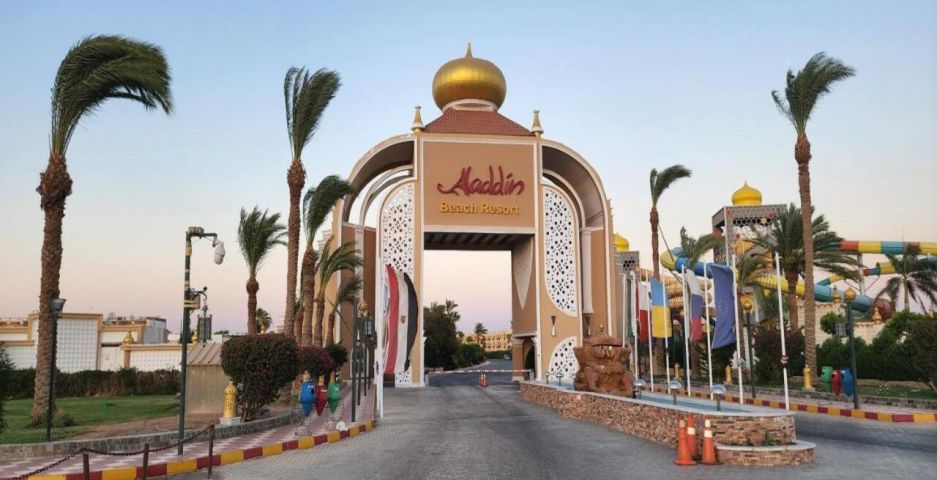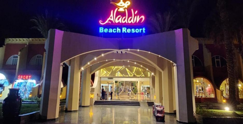 Aladdin Beach Resort 4* се намира на самия бряг на Червено море, в курортната зона на Хургада. Разположен е на около 8–12 км от международното летище и на приблизително 15 км от центъра на града. Хотелът е част от комплекс заедно с съседните Jasmine Village и Ali Baba Palace, с които споделя определени удобства.