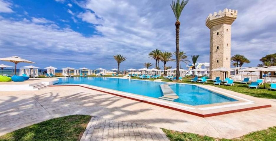 На територията на хотела: Хотелът разполага с 4 басейна, включително басейн с 3 пързалки и детски басейн. Басейнът, ресторантът, барът и зоната за забавления са разположени един до друг с лице към морето. Хотелът разполага със СПА, тенис корт, фитнес, анимация.