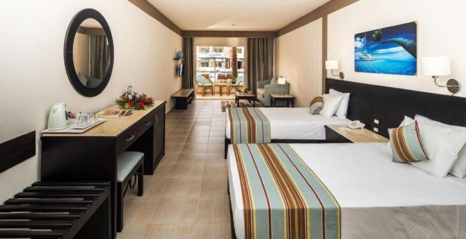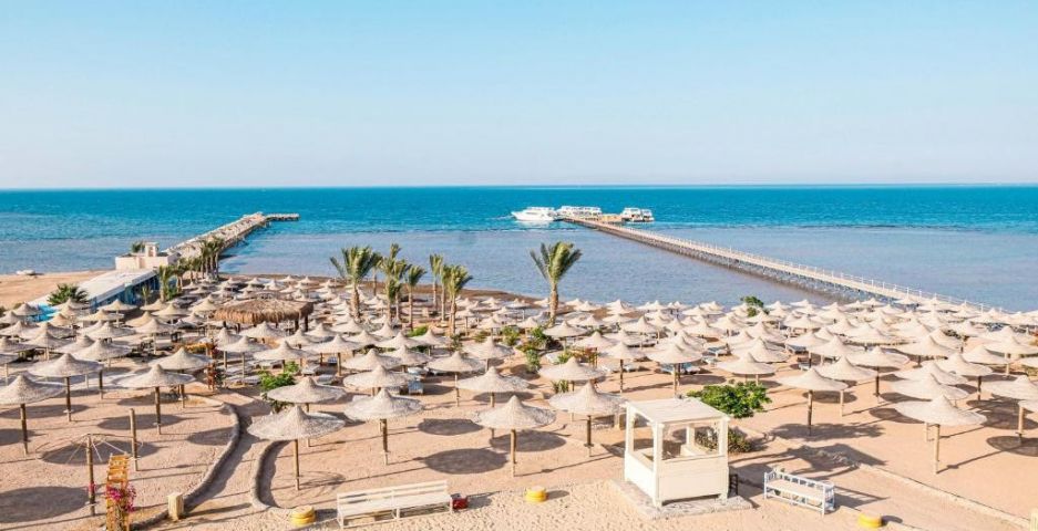 Хотелът се намира в северната част на Хургада. Голям избор от развлечения няма да позволи на нито един гост да скучае. Множество спортни събития, настолни и компютърни игри, спа процедури и водни атракции – тук всеки ще намери нещо за своя вкус и настроение. Менюто на ресторантите на хотела ще ви зарадва с вкусни ястия от всички кухни на света. В здравния клуб гостите могат да се насладят на релаксиращи масажи и козметични процедури, сауна и джакузи и да тренират във фитнес залата. Децата няма да скучаят в хотела, защото за тях има детска площадка и детски клуб. Екипът от аниматори организира различни шоу програми и състезания за деца и възрастни през целия ден. Отлично място за активен младежки отдих и спокойна семейна почивка с деца. Общият брой на стаите е 333. Ремонт - хотелът е подложен на ежегоден поетапен ремонт. През 2019 г. е построен аквапарк. Разстояние до морето: първа брегова линия. Разстояние до квартал Сакала: 25 км. Разстояние до квартал Дахар: 19 км. Разстояние до Senzo Mall: 30 км. Летище: Международно летище Хургада - 23 км. Разстояние до морето: 1 линия.