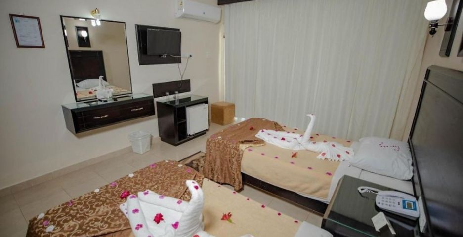 В стаите: Хотелът разполага с общо 144 стаи. Хотелът се състои от основна 3-етажна сграда, два 2-етажни корпуса и две 2-етажни бунгала. Всички стаи са оборудвани с климатик, телевизор, телефон, баня с душ, сешоар, минибар (платен), сейф, балкон/тераса. Почистване на стаите и смяна на кърпи - всеки ден, смяна на спално бельо - 3 пъти седмично.