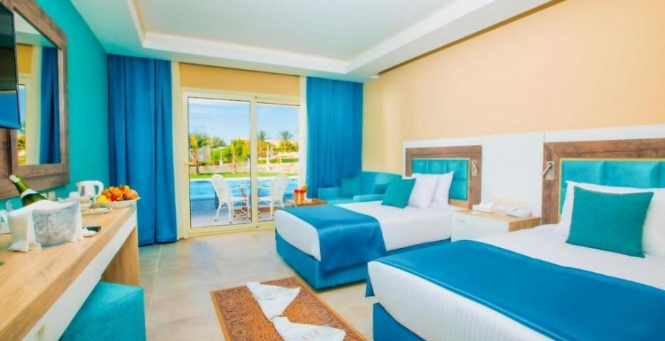 В стаите: Хотелът разполага с общо 726 стаи, разположени в две 3-етажни сгради. Всички стаи са оборудвани  с балкон или тераса, повечето стаи са заобиколени от вода, минибар, LED телевизор (сателитни канали, музика, спорт, новини и др.), баня с душ кабина, сешоар, Сплит климатична система, сейф.