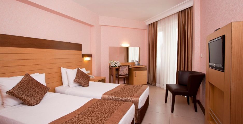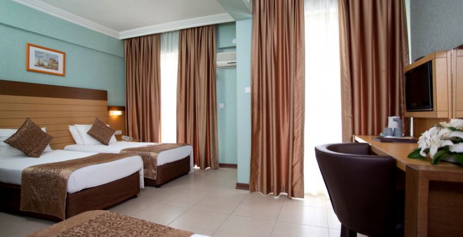 Удобствата в хотела включват открит плувен басейн и традиционна турска баня. Гостите могат да се насладят на релаксиращ масаж или да отпочиват в сауната. Хотелът разполага с фитнес център, зала за игри и безплатен Wi-Fi. Хотелът разполага с фоайе, 24-часова рецепция, интернет зала, WiFi, бар, ресторант, открит плувен басейн, заседателна зала, телевизионна зала, турска баня, парна баня, сауна, масажен салон, фитнес зала, пералня, асансьор, генератор, игрална зала, мини маркет, билярдна зала, футболна маса и лекар. Освен това на плажа Клеопатра ви очакват тенис, баскетбол, волейбол и водни спортове.