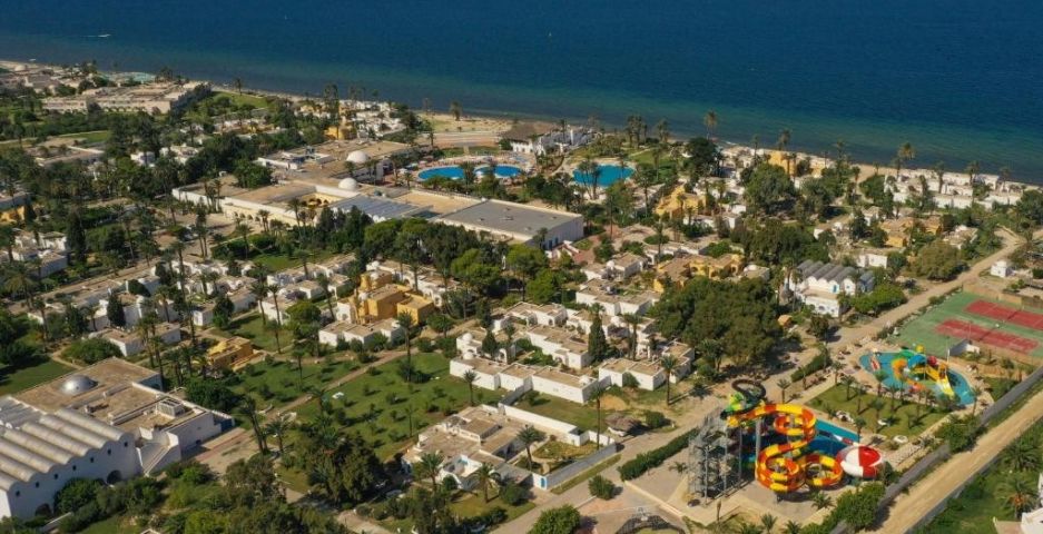 Разположение: Хотелът се намира на 57 км от летище Енфида, на 14 км от Монастир, на 12 км от Сус, на брега на морето. Построен през 1972 г. с обща площ 24 хектара, реновиран през 2019 г. Shems Holiday Village & Aquapark е истински оазис, украсен с цветя и палми, предлагащ на своите гости незабравим престой в красива атмосфера с качествено обслужване и много забавления.
