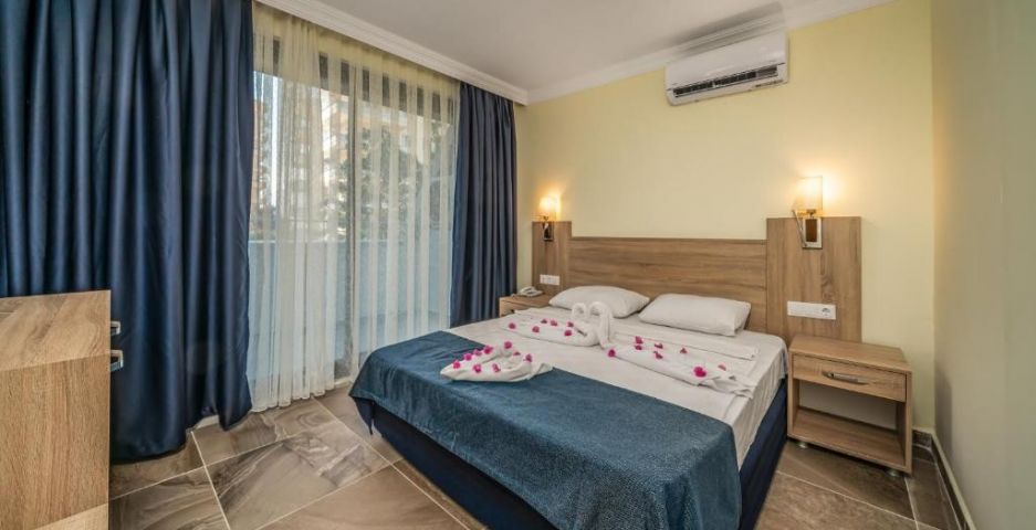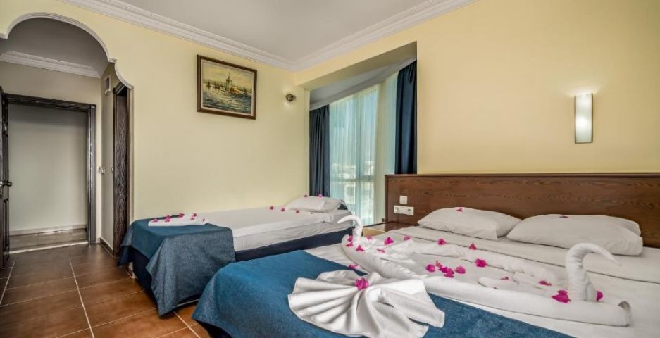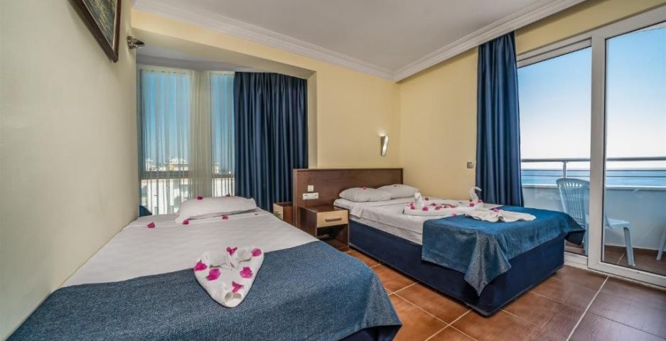 Разположение: Перфектно местоположение, само на метри от плажа на Алания. Летище Анталия е на час и половина с кола от хотела, а градската част на Алания с множество търговски зони и заведения е на 5 км от хотела.