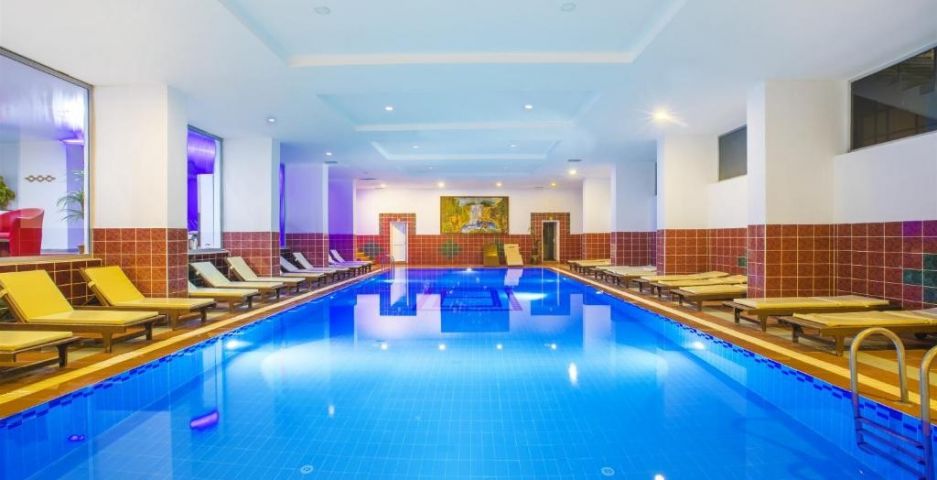 На територията на хотела: Голям басейн с детска зона и водна пързалка, бар до басейна, както и вътрешен басейн. Хотелът разполага със собствена зона на плажа, с бар, шезлонги и чадъри. Бюфет-ресторант и коктейл бар. СПА с хамам, сауна, масажи и козметични процедури.