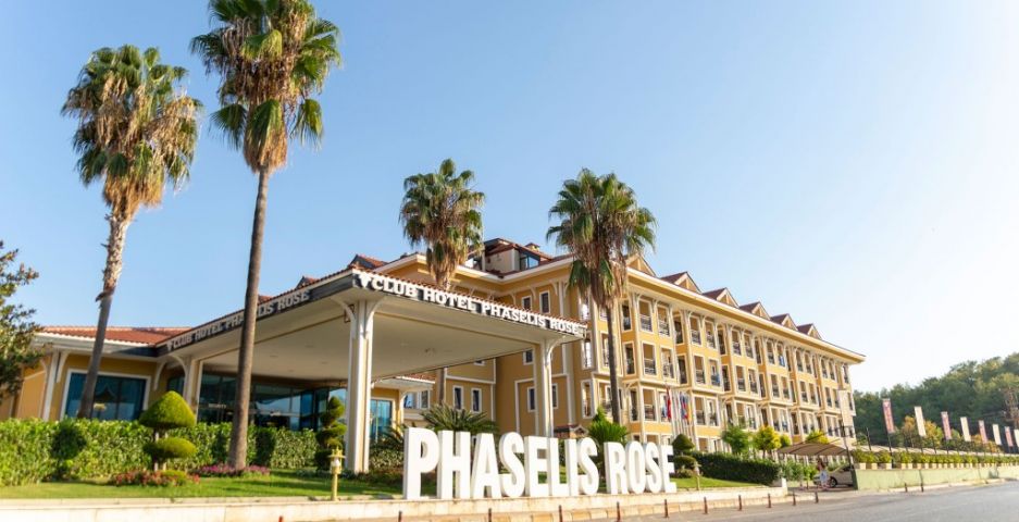 Club Hotel Phaselis Rose е разположен на плажа на района Текирова със собствен пясъчен плаж и голяма зелена градина. Комплексът разполага с 2 открити басейна, 3 водни пързалки и спа съоръжения. Модерните стаи разполагат с климатик, сателитна телевизия и мини бар. Всички стаи са с изглед към градината, планината или морето. Заведенията за хранене включват основен ресторант с турска и интернационална кухня на шведска маса, както и 3 а-ла-карт ресторанта, които предлагат месо, кебап и морска храна. Гостите могат да се насладят на хранене на открито и на закрито. Баровете предлагат разнообразие от алкохолни и безалкохолни напитки. Хотелът разполага със сауна, турска баня и хидромасажна вана за релаксация. Гостите могат да играят тенис и плажен волейбол или да ползват фитнес центъра. Има и съоръжения за водни спортове. За децата се предлагат детски басейн и разнообразни занимания. Центърът на град Кемер е на 15 километра от хотела. Летище Анталия е на 75 километра.