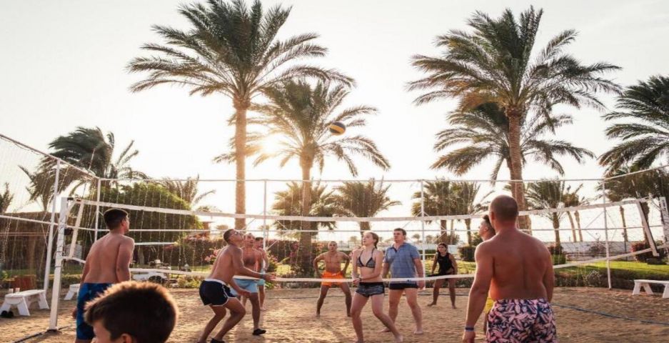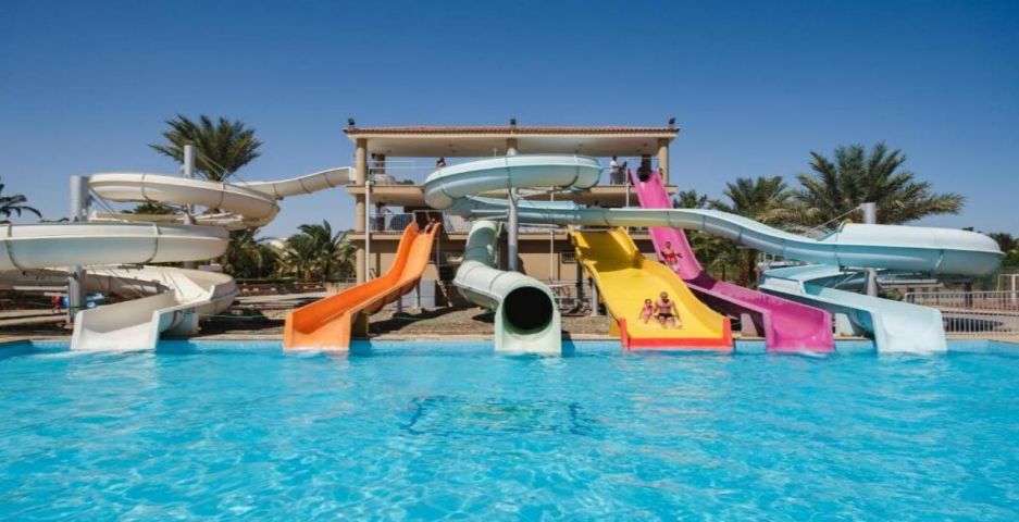 Desert Rose 5* разполага със собствен девствен пясъчен плаж с дължина от 1км, с 40 000 м² природна лагуна със златист пясък. Хотелът предлага на своите клиенти идеална атмосфера за забавления или просто да се насладят на прекрасния ненадминат климат на Червено море. Хотелът разполага с 4 плувни басейна, 1 с олимпийски размери, голям плувен басейн с палуби за слънчеви бани и бар край него, отопляем семеен плувен басейн и детски плувен басейн, специализиран за бебета и малки деца със собствен мини душ и мини столове. Като допълнение Аквапаркът предлага още и 6 водни пързалки.