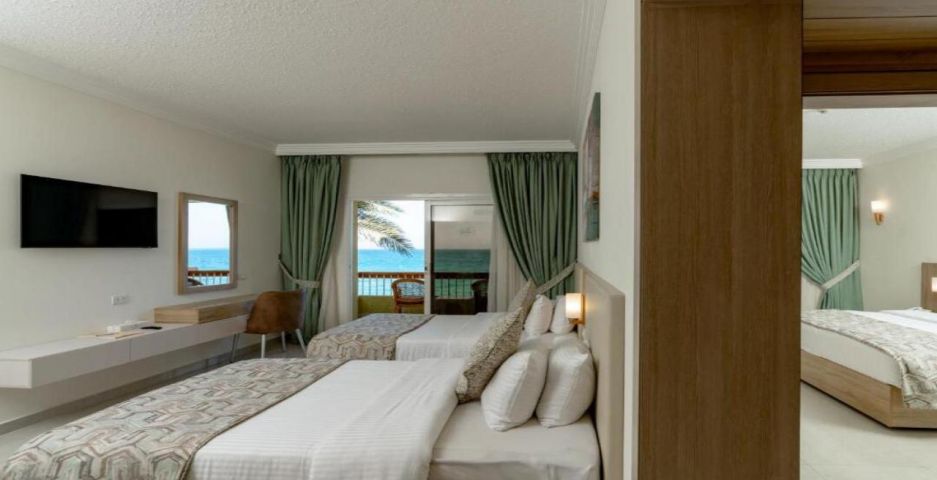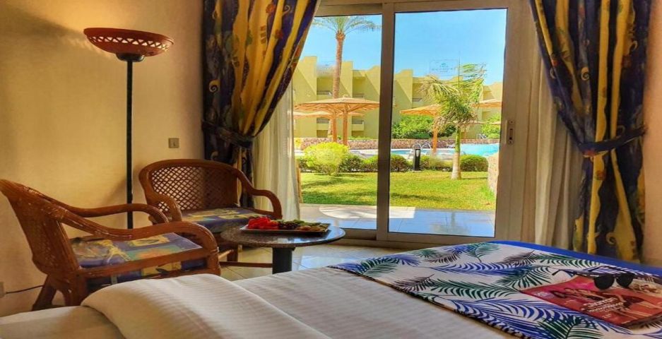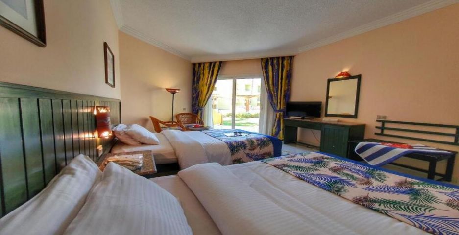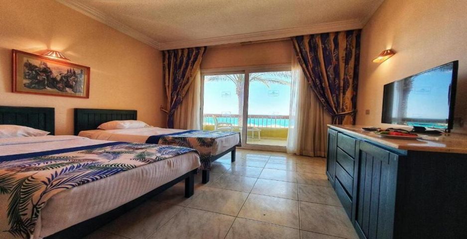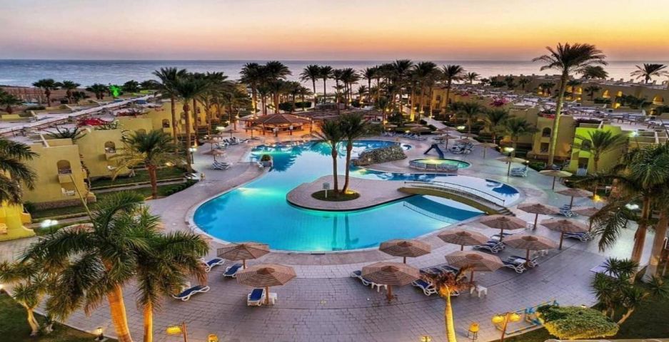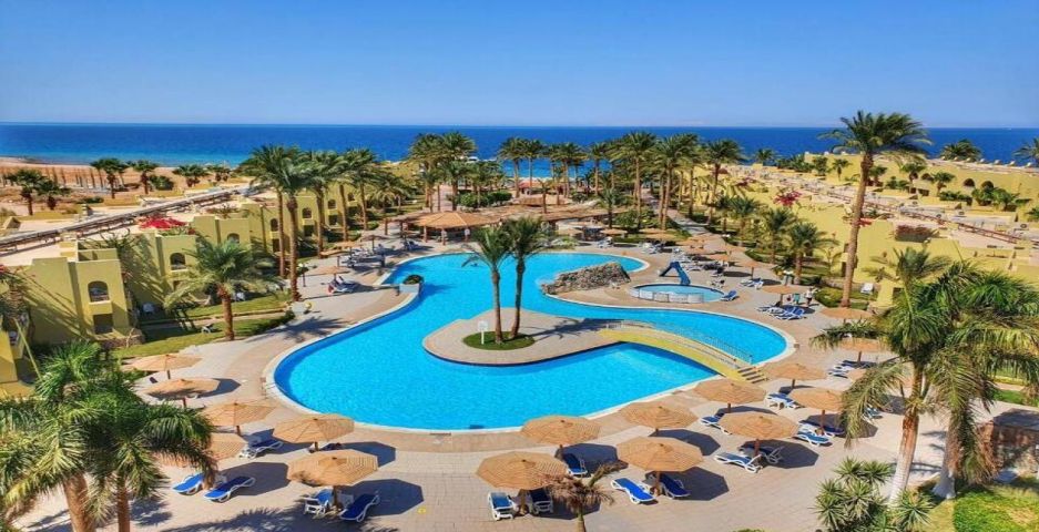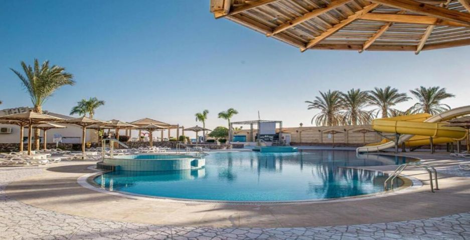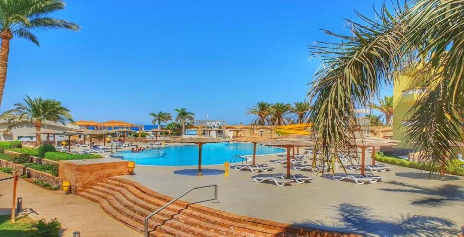 Palm Beach Resort 4* е обзаведен в модерен стил, а обстановката и атмосферата са традиционни за Египет. Хотелът разполага с прекрасни гледки към Червено море, с 2 басейна, собствен пясъчен плаж и клуб по гмуркане. Гостите на хотела имат на разположение още: ресторант с международна кухня, бар с напитки и леки закуски, релаксиращи масажи, сауна и фитнес, екип от аниматори, организиращи различни занимания и игри през целия ден. Центърът по гмуркане - The Caves, предлага различен тип водни спортове, като гмуркане, шнорхелинг и уиндсърф.