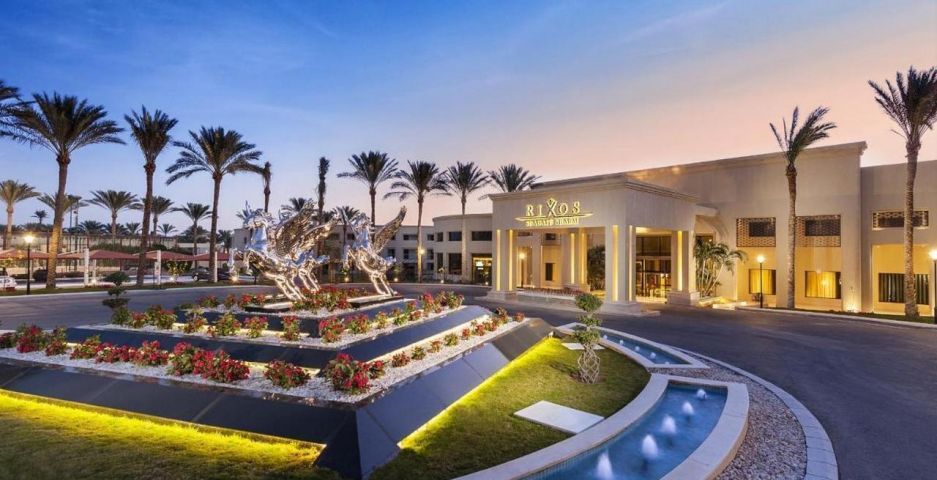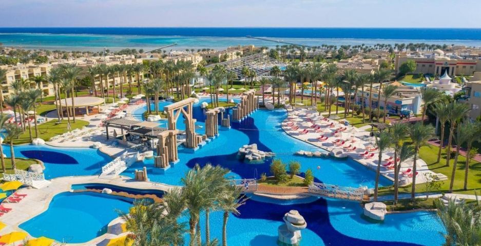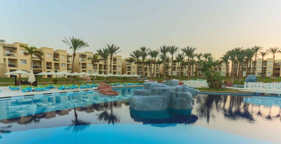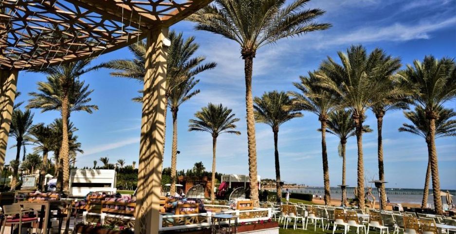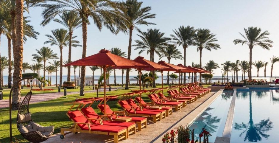 Този луксозен 5-звезден хотелски комплекс в Шарм ел-Шейх е разположен сред палмови дървета на брега на морето.