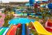 Има 6 кули с 23 водни пързалки, големи интерактивни водни фонтани, аква кула, бавна река и басейн с вълни.